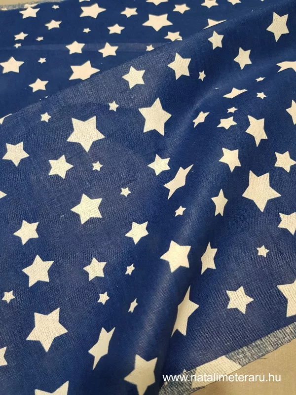 Fehér csillag királykék alapon pamut vászon