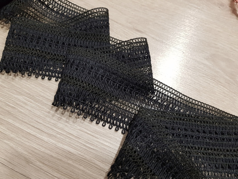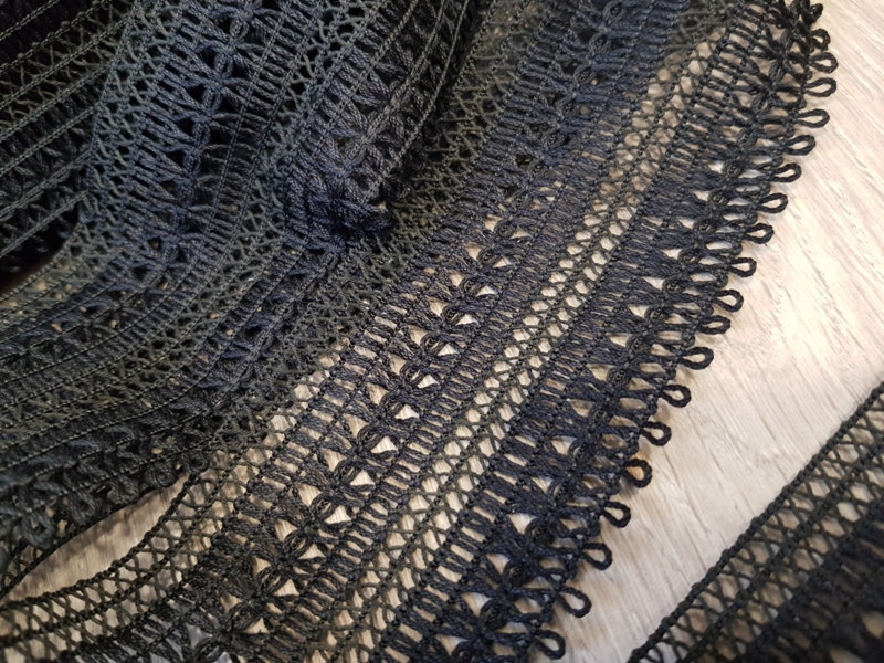 Fekete kevertszálas pamut szalag csipke 67mm-es