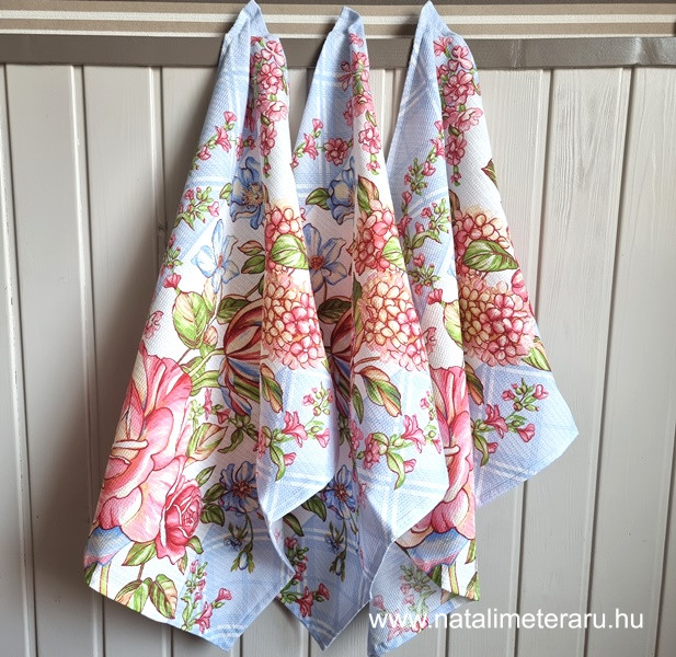 Festői virágok, 3 darabos konyharuha világoskék