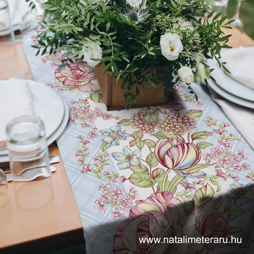 Gyönyörűséges festői minta, 50 cm széles vastag pamutvászon, készülhet belőle asztal középfutó, díszpárna, táska, lakásdekoráció.