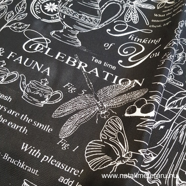 Gyönyörű mintás, 150 cm széles vastag pamutvászon, készülhet belőle asztal középfutó, díszpárna, táska, lakásdekoráció.