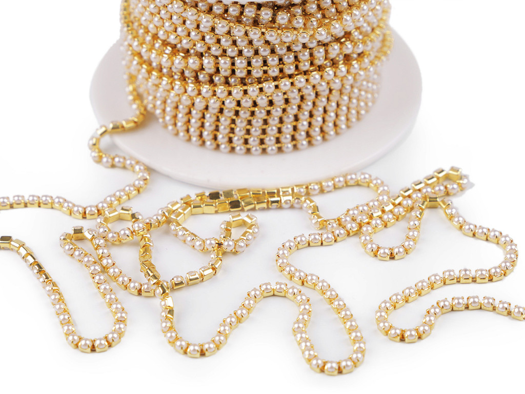 Gyöngyös lánc - félgyöngy széles 2 mm