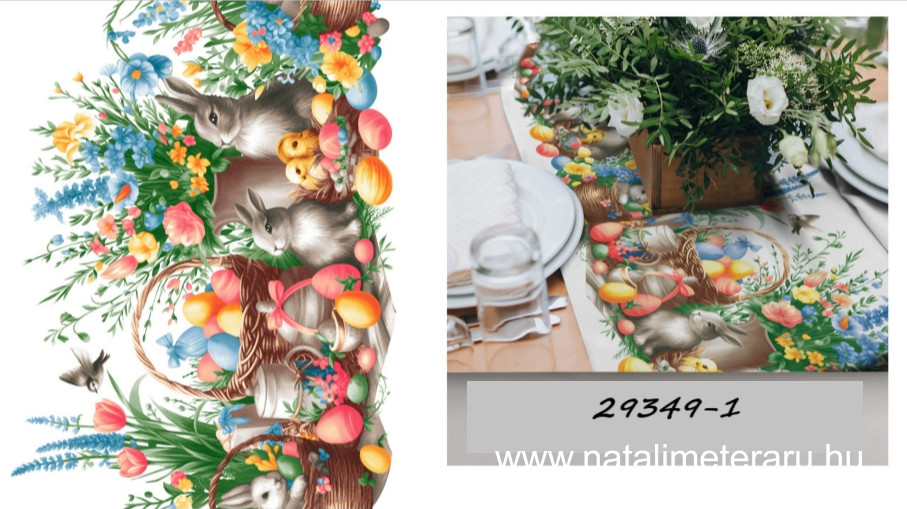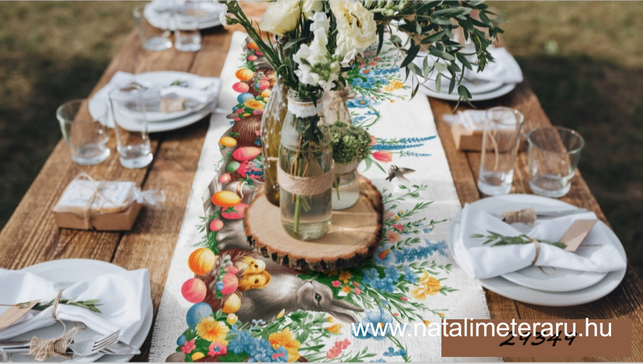 Húsvéti nyuszi , színes tojások asztali futó 1,8x0,5m
