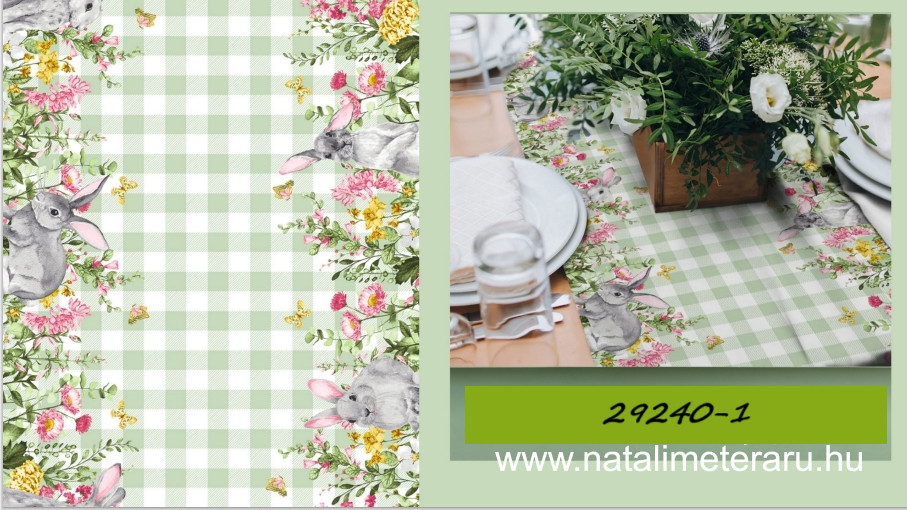 Húsvéti nyuszi ,zöld kockás asztali futó 2,2x0,5m