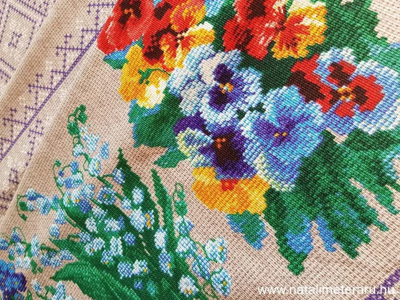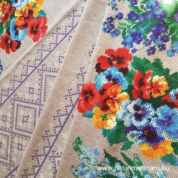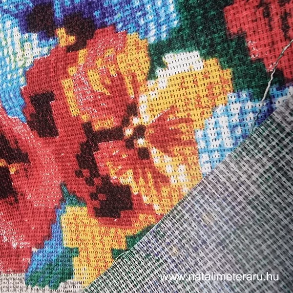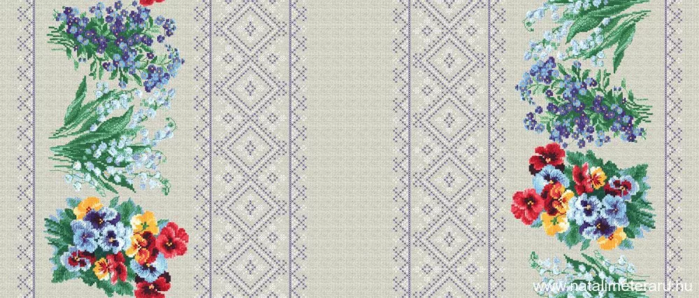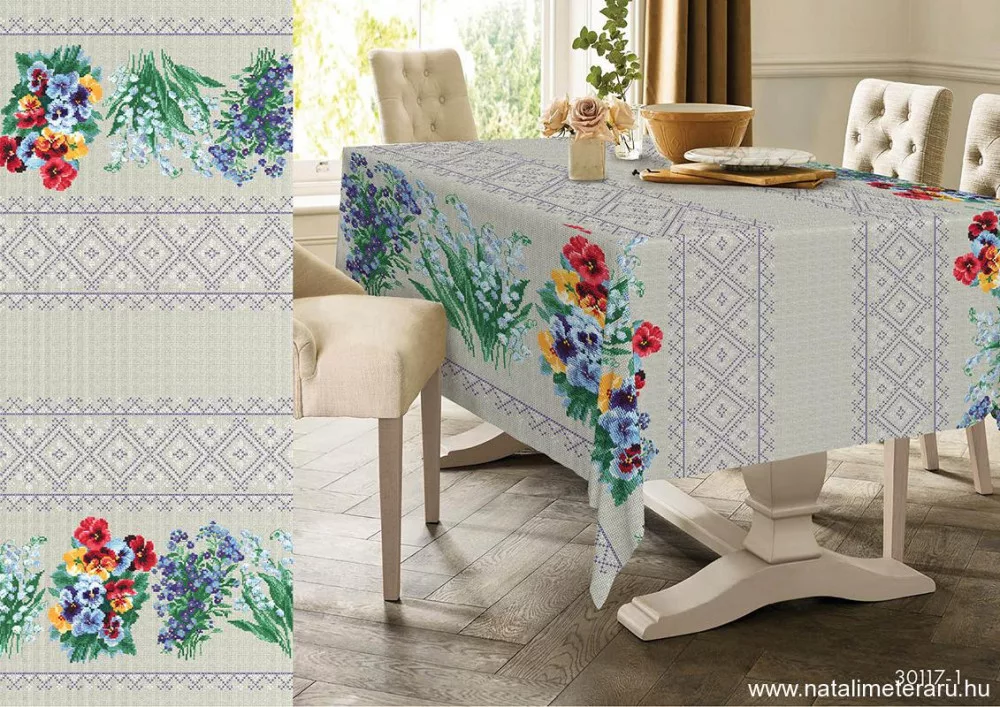 Gyönyörű mintás, mindkét oldalán bordűrös pamutvászon lakástextil és dekorácios célokra.