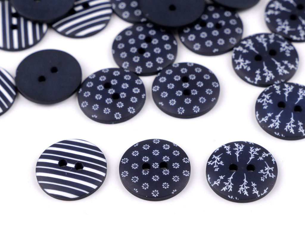• A kék nyomat motívummal ellátott gombok elülső oldalán finoman domborúak, felületük pedig matt.