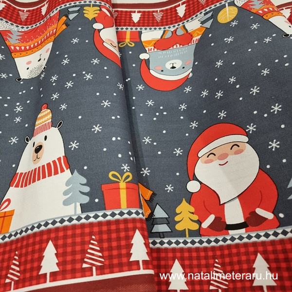Mikulás, jegesmedve szürke alapon karácsonyi 50 cm-es pamutvászon