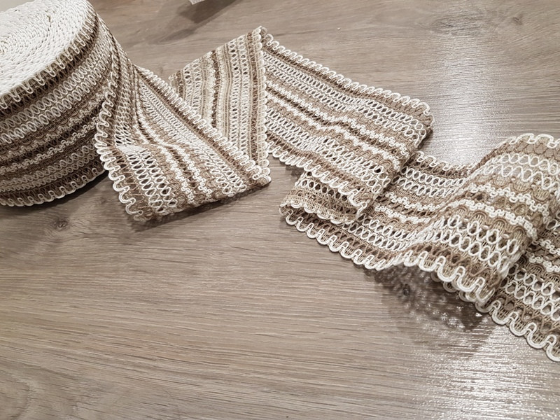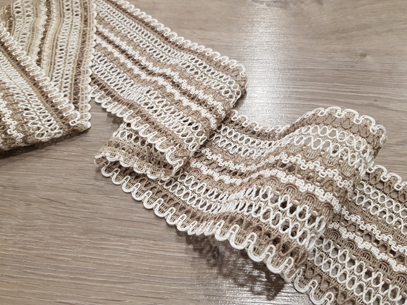 Kevertszálas len szalag csipke ruházati és kézműves célokra.