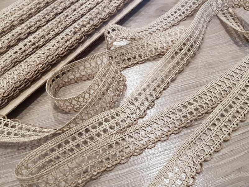 Kevertszálas len szalag csipke ruházati és kézműves célokra.