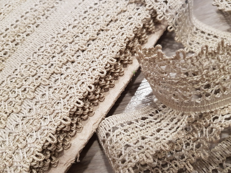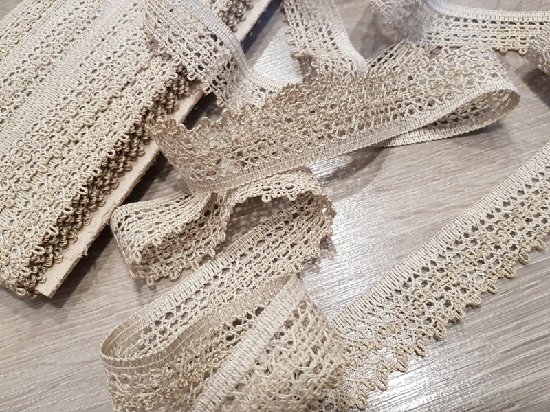 Kevertszálas len szalag csipke ruházati és kézműves célokra.