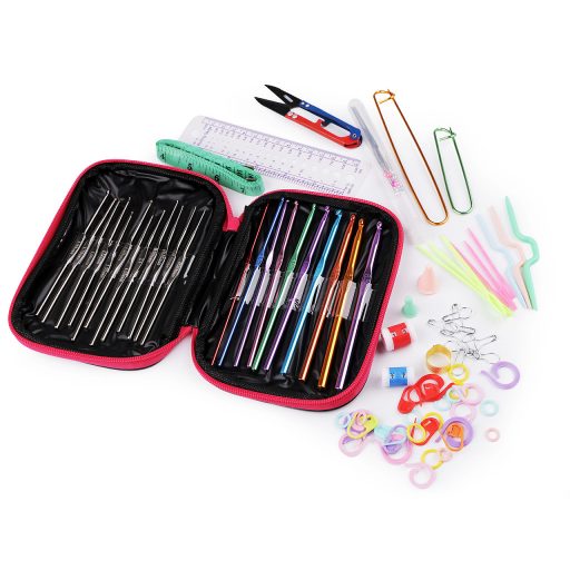 • A horgok és horgolóeszközök készletét bőrtokban tároljuk, amit cipzárral könnyedén zárhatunk.