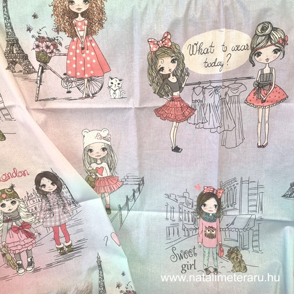 Pamut perkál (finom pamutvászon), gyönyörű modern minta, prémium minőség, ruházat és lakástextil készítéséhez. Szép gyerek holmikat lehet készíteni belőle.