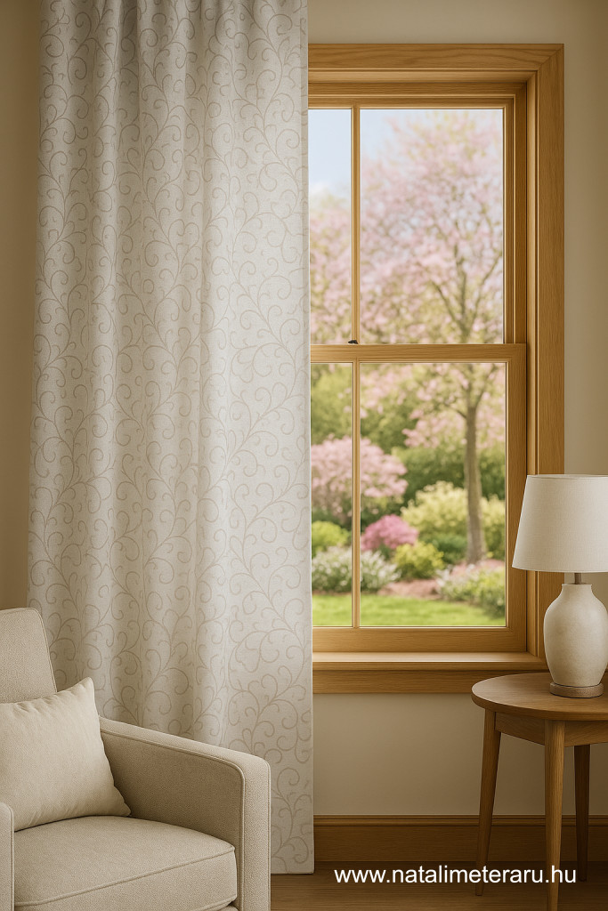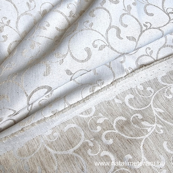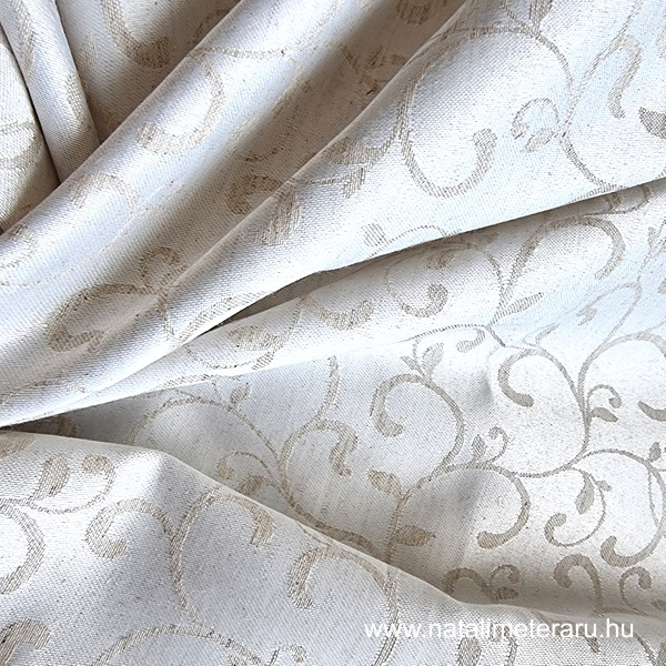 Prémium minőségű damaszt, amely len és poliészter kevert szálas anyagból készül. Az anyag különleges vízlepergető és szennyeződéstaszító bevonattal van ellátva, amely megkönnyíti a tisztítást és növeli a tartósságát. Jacquard technikával készült anyag, amelynél a mintázat a szövésből adódó fény–matt hatás révén jelenik meg. Elegáns, időtálló választás függönyökhöz, bútorkárpitokhoz, díszpárnákhoz és egyéb lakberendezési célokra, mivel ötvözi a len természetes eleganciáját és poliészter praktikus előnyöket. Tartós szövet, amely ötvözi a kényelmet és az erősséget, ellenáll a szennyeződésnek és a pornak.