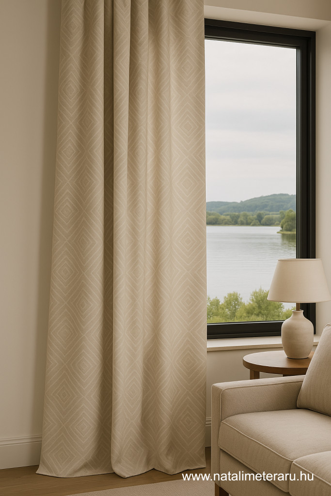 Prémium minőségű damaszt, amely len és poliészter kevert szálas anyagból készül. Az anyag különleges vízlepergető és szennyeződéstaszító bevonattal van ellátva, amely megkönnyíti a tisztítást és növeli a tartósságát. Jacquard technikával készült anyag, amelynél a mintázat a szövésből adódó fény–matt hatás révén jelenik meg. Elegáns, időtálló választás függönyökhöz, bútorkárpitokhoz, díszpárnákhoz és egyéb lakberendezési célokra, mivel ötvözi a len természetes eleganciáját és poliészter praktikus előnyöket. Tartós szövet, amely ötvözi a kényelmet és az erősséget, ellenáll a szennyeződésnek és a pornak.  Az enteriőrfotók csak illusztrációként szolgálnak.