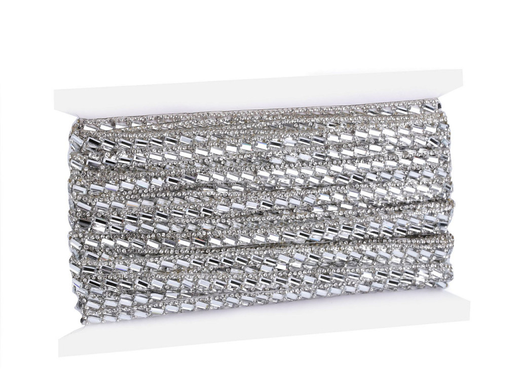 • Egy vasalható fonat vágott strasszokkal megmenti a ruhák díszítésének munkáját.