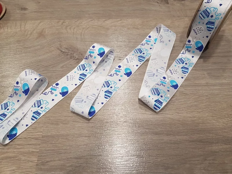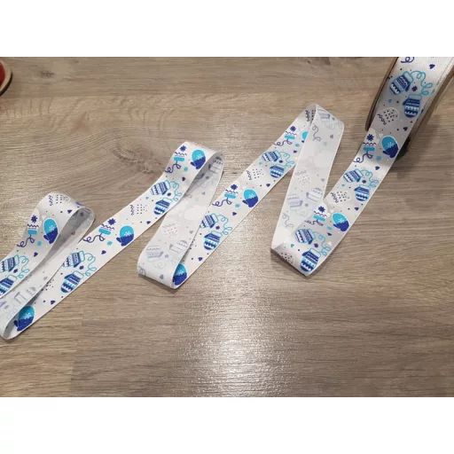 Fehér-kék karácsonyi szatén szalag