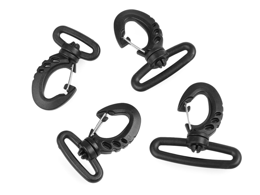 • A műanyag karabiner alkalmas sporttáskák, hátizsákok vagy nagyobb kézitáskák pántjaira.