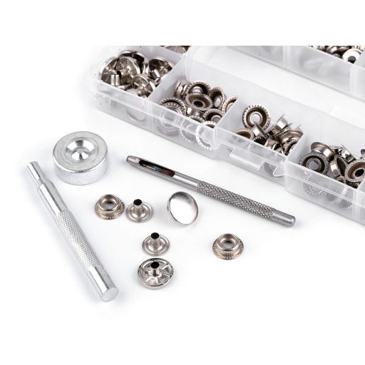 Dzseki patent rugós készlet Ø15 mm patentozó szerszám lyukasztóval vastag anyagra