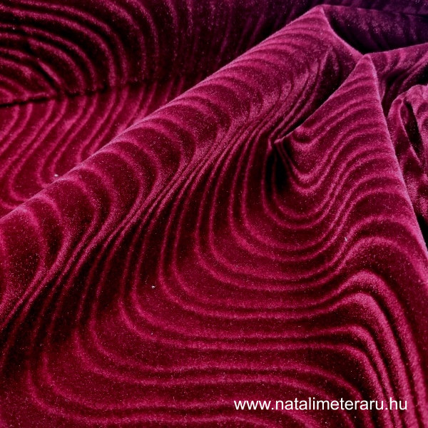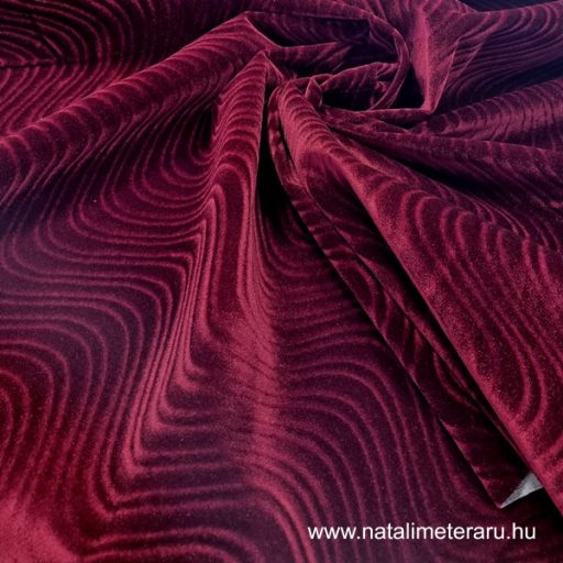 Gyönyörű bordó, hullám mintás bársony. Bútorhuzat, ágytakaró, párna és más kreativ holmik készitéséhez ajánljuk.