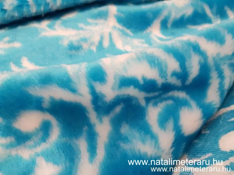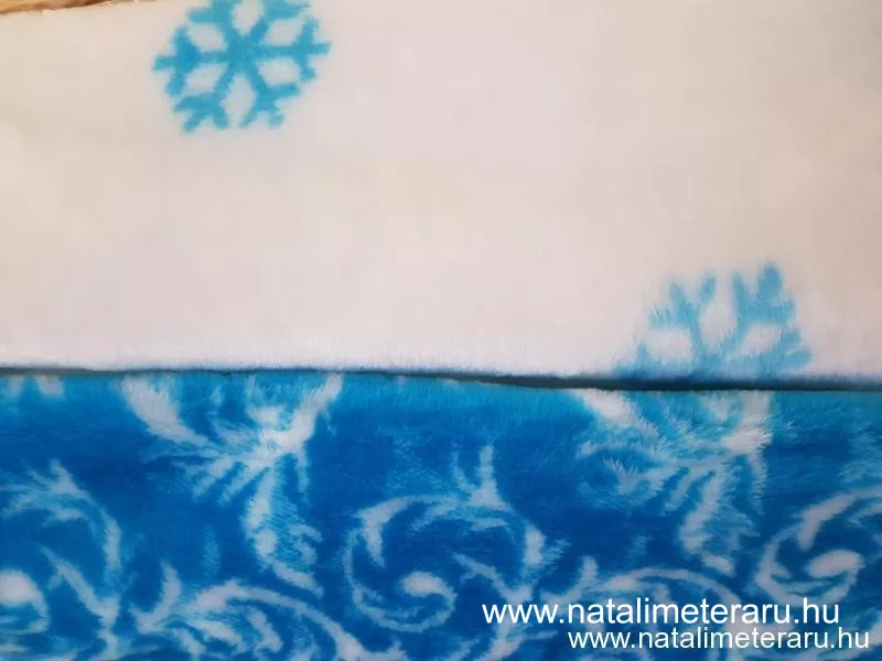Türkizkék fehér mintás karácsonyi műszőrme csík 30 cm x 150 cm