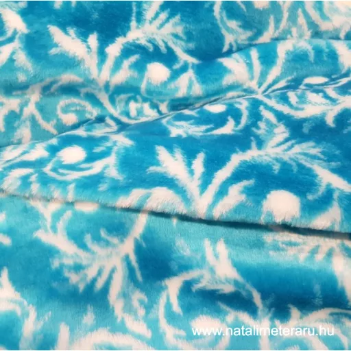 Türkizkék fehér mintás karácsonyi műszőrme csík 40 cm x 150 cm
