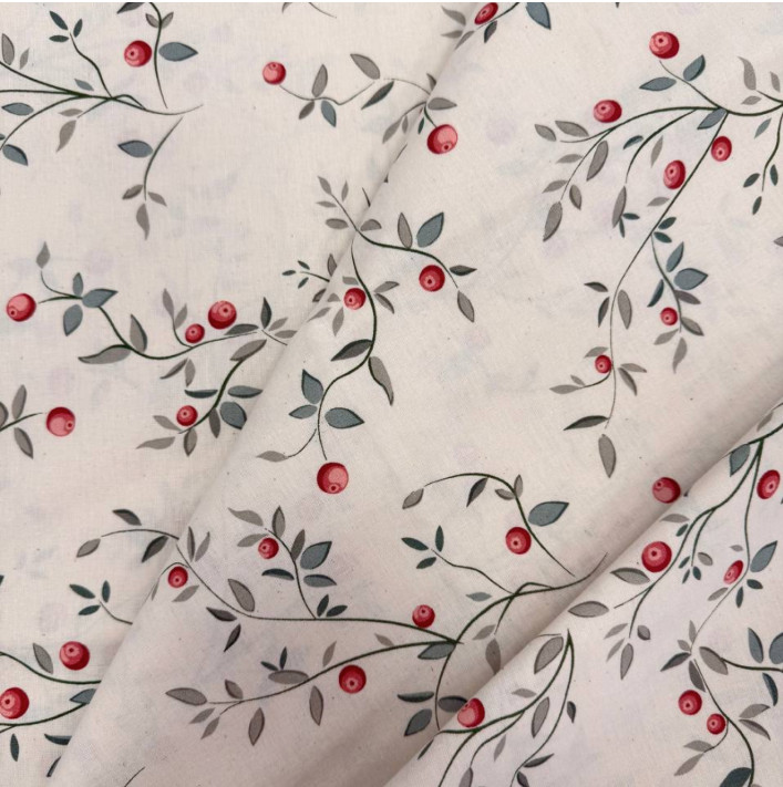 Vörös áfonya mintás előmosott prémium pamutperkál / finom pamutvászon 220 cm széles